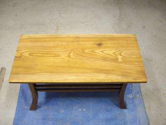 ▼工程順序 脚部の柿渋下地(脚部は新たに製作したもの) サンダーやペーパによる天板のケレン →天板の柿渋下地 →天板の漆塗り(生漆使用) →漆拭き(余分な漆を除去すると共に、素地に漆をよく摺りこみます) →全体の漆塗り |