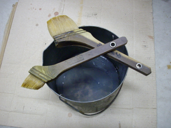 ▼工程順序 油性ステイン塗料で着色×1回 →2液ヤニ止めシーラーで中塗り×2回 →サンダーで塗装面を整えます →ポリエステル樹脂塗料で上塗り×1回(ウーローラ使用) →カップガンによる吹き付け×1回 ※ポリエステル樹脂塗料について 上塗り材のポリエステル樹脂塗料は高粘度塗料です。 硬化材と混ぜた塗料はピンク色に見えますが、仕上げは透明色になります。 ポリエステル樹脂塗料の特徴としては、 塗料全体が塗膜を形成するので、非常に厚い塗膜が一回塗りで得られ、 塗膜が内部から硬化していくので上乾きの心配がありません。 塗膜が厚いほど硬化が良いといううことがあげられます。 しかし、可使時間がとても短いので、 可使時間を延長するための特殊な塗装法で利用される場合が多いです。 用途としては、箱物家具やテーブルの天板仕上げ等で使用されています。 上塗り吹き付け直後は、とても艶がありますが塗膜の硬化が進むにつれて 徐々に落ち着いた塗装完了写真の様な艶になります。 |