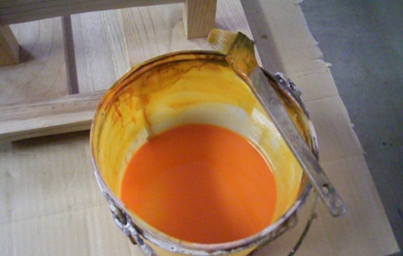 ▼工程順序 手作業による素地調整 →油性ステイン塗料で着色(オレンジイエロー色) →2液ヤニ止めシーラー中塗り(状態を見ながらの重ね塗り) →サンダー及び手作業による素地調整 →ポリウレタン塗料半艶仕上げ(状態を見ながらの重ね塗り) ※ポリウレタン塗料について 耐摩耗性、耐候性に優れていることから、家具の他 スポーツ用品等にも使用されています。 |