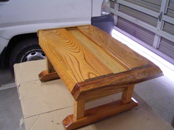 ▼工程順序 →全体の素地調整(木の表面を滑らかに整えます) →1回目のセラウッド塗装 →素地研磨(2回目の塗装前に全体を研磨) →カップガンによる2回目のセラウッド塗装(カップガン吹付けの工程写真は省略) (カップガンによる吹付けは、上記のテーブル7の工程写真をご参照下さい) ※セラウッド塗料とは? ウレタン樹脂とファインセラミックスによる耐久性の高い家具用トップコートで 耐汚染性、耐熱性、耐候性に優れ、環境にも配慮したF☆☆☆☆対応塗料です。 |